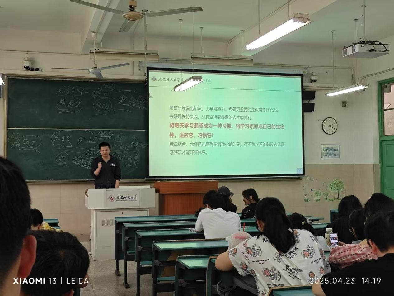 班会伊始,吴楠老师简要介绍了近年考研形势,强调本次经验分享会的重要性,希望通过学长学姐的亲身经历,为同学们拨开迷雾,指明方向。