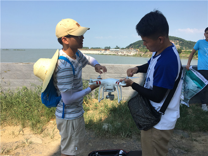 午饭后,自然组的队员立即驱车前往白山节制枢纽开始下午的调研工作。队员们首先测了水流向及水位,在准备用无人机采集DOM图像时,由于大桥附近地磁场干扰导致无人机无法起飞,任务因而暂时搁浅。紧接着队员们对模型矢量化进行空间分析,得出输水的能量等特征信息并且对引江济淮河道扩建和堤坝加固工程进行了实地调研。因为到达目的地的时间较晚,时间紧,任务重,同学们各司其职,最终圆满完成任务。