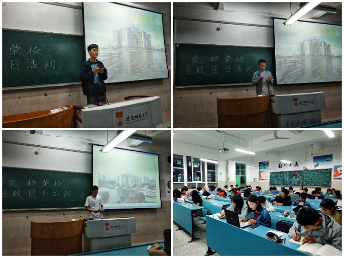走出的人不管从事哪一方面的工作,都必须心怀安师大,严于律己,规范自己的一言一行。其他的同学的观点大抵与两位同学相同。最后,团支书总结,生活在这个时代是我们的幸运。为此,我们需要也必然要去爱我们的党,去热爱我们的学校。此次团日活动在团支书唐鸿的主持下,同学的积极参与下圆满完成。