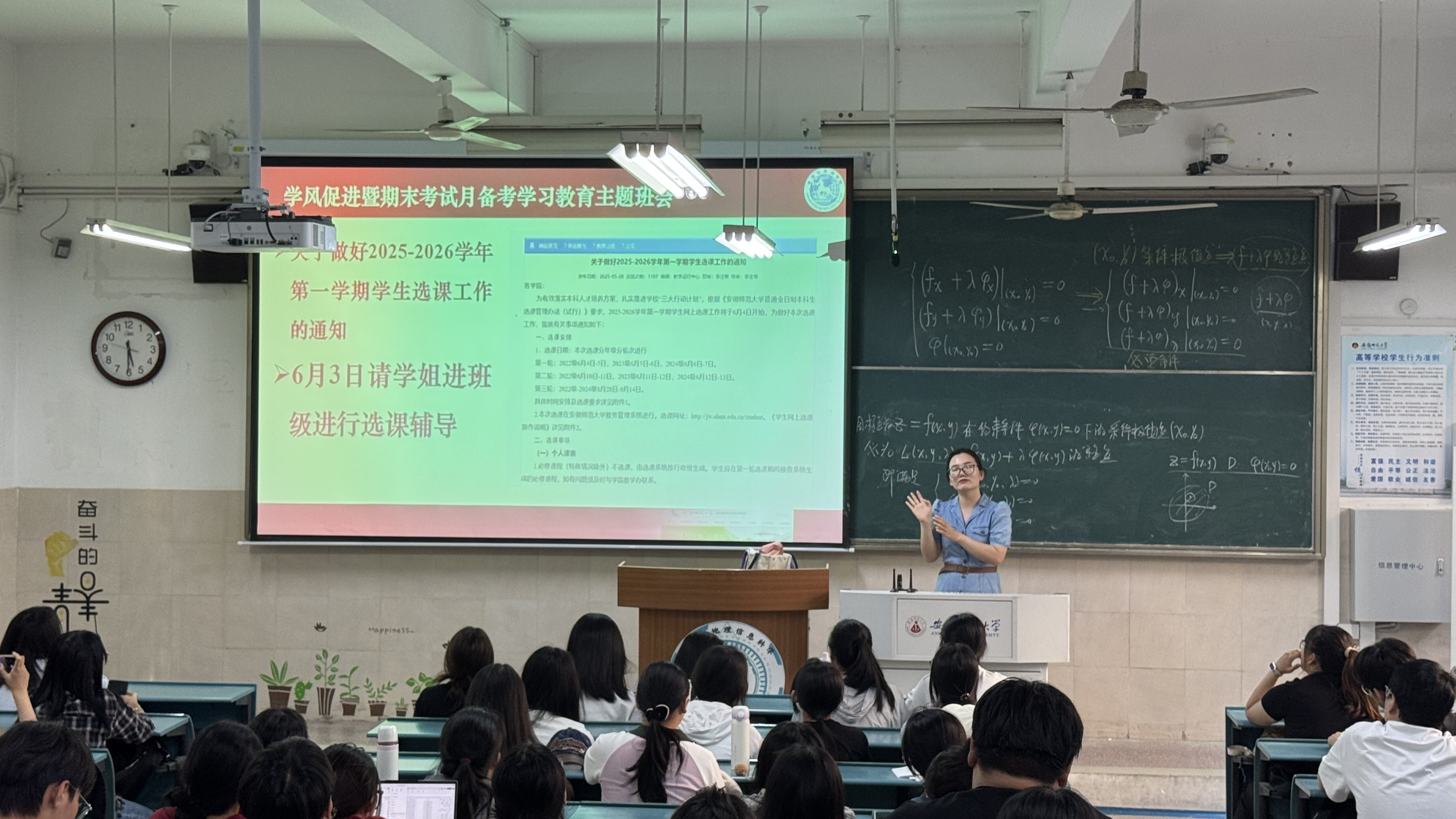 针对即将到来的期末考试月,韦银艳聚焦“学风促进暨备考学习教育”主题,指出近期班级学习管理存在的问题,分析学风现状,鼓励同学们端正学习态度,积极应对期末考试,提出将通过开展学习需求调研,把握同学们的备考难点与需求,提供精准帮扶。
