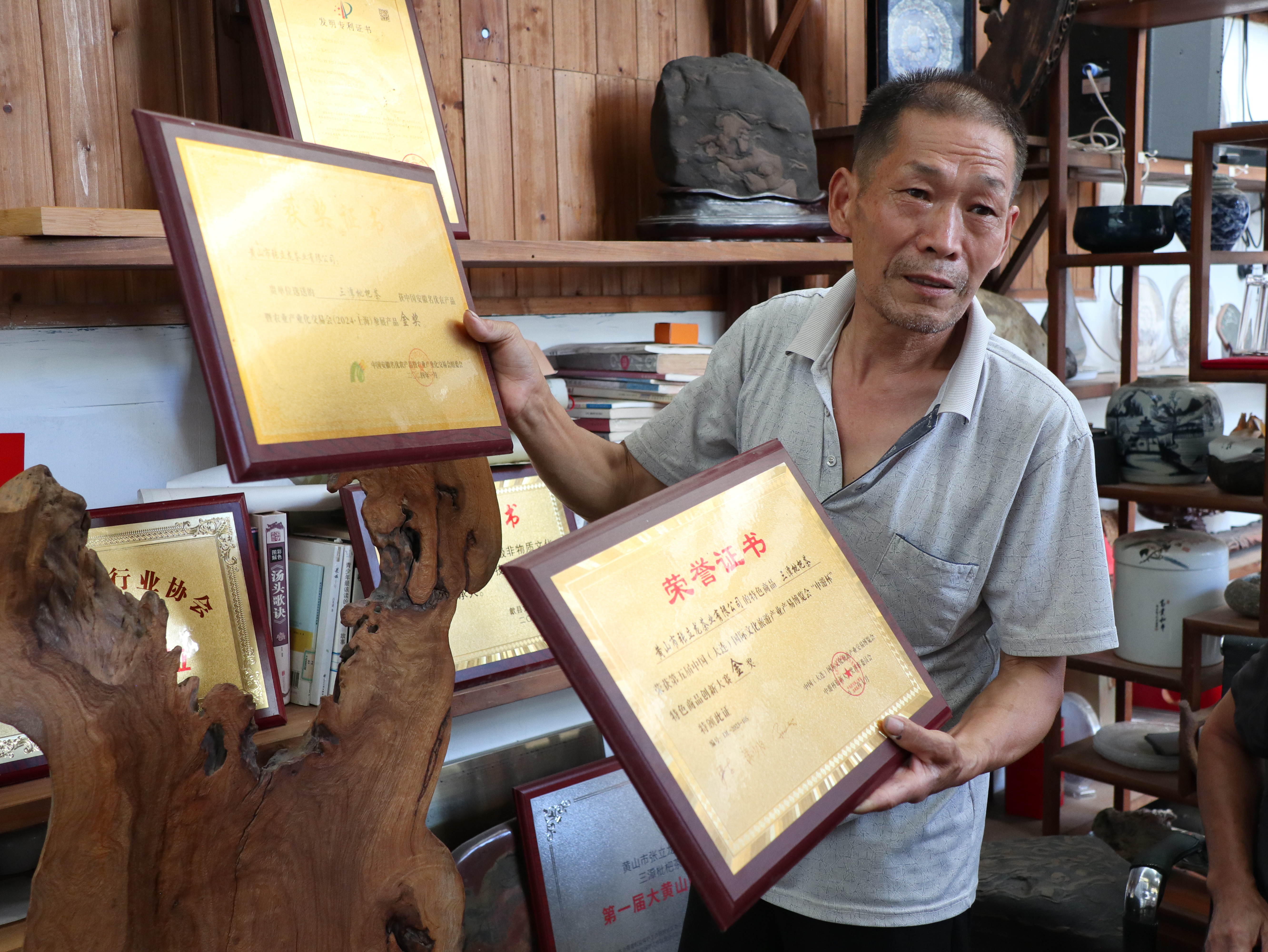作为皖南传统村落代表,瀹潭村以茶叶、枇杷种植为核心产业,形成"线上+线下"双渠道销售模式。据张立龙父亲介绍,2024年全村茶叶产业年收入突破百万元,电商渠道贡献率达50%,产品通过抖音、淘宝等平台销往全国。值得关注的是,当地创新开发的三潭枇杷茶已获国家专利认证,成为产业增值的重要突破口。