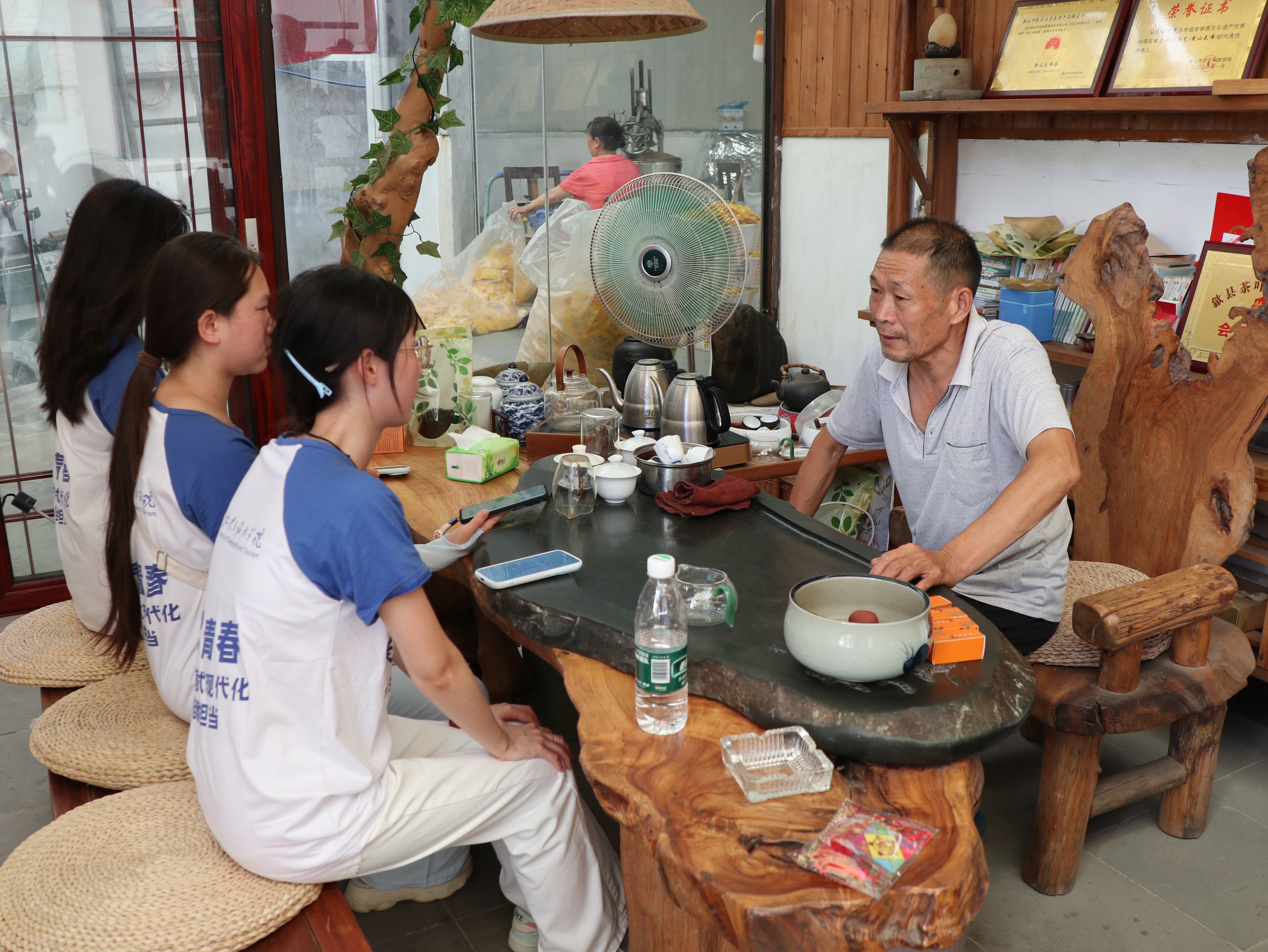 “做青弋行者,序檐语岁时”社会实践团队深入皖南传统村落,以黄山市歙县坑口乡瀹潭村为调研样本,通过实地走访,与村支部书记、立龙山庄老板张立龙深度对话,全面梳理当地茶叶产业发展脉络与转型困境,探寻传统村落现代化转型的实践路径。