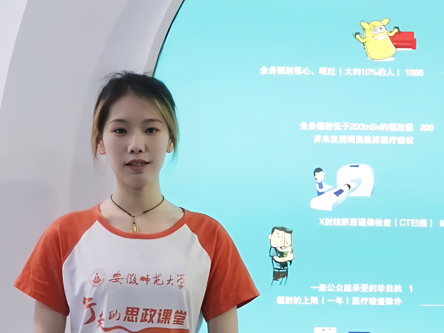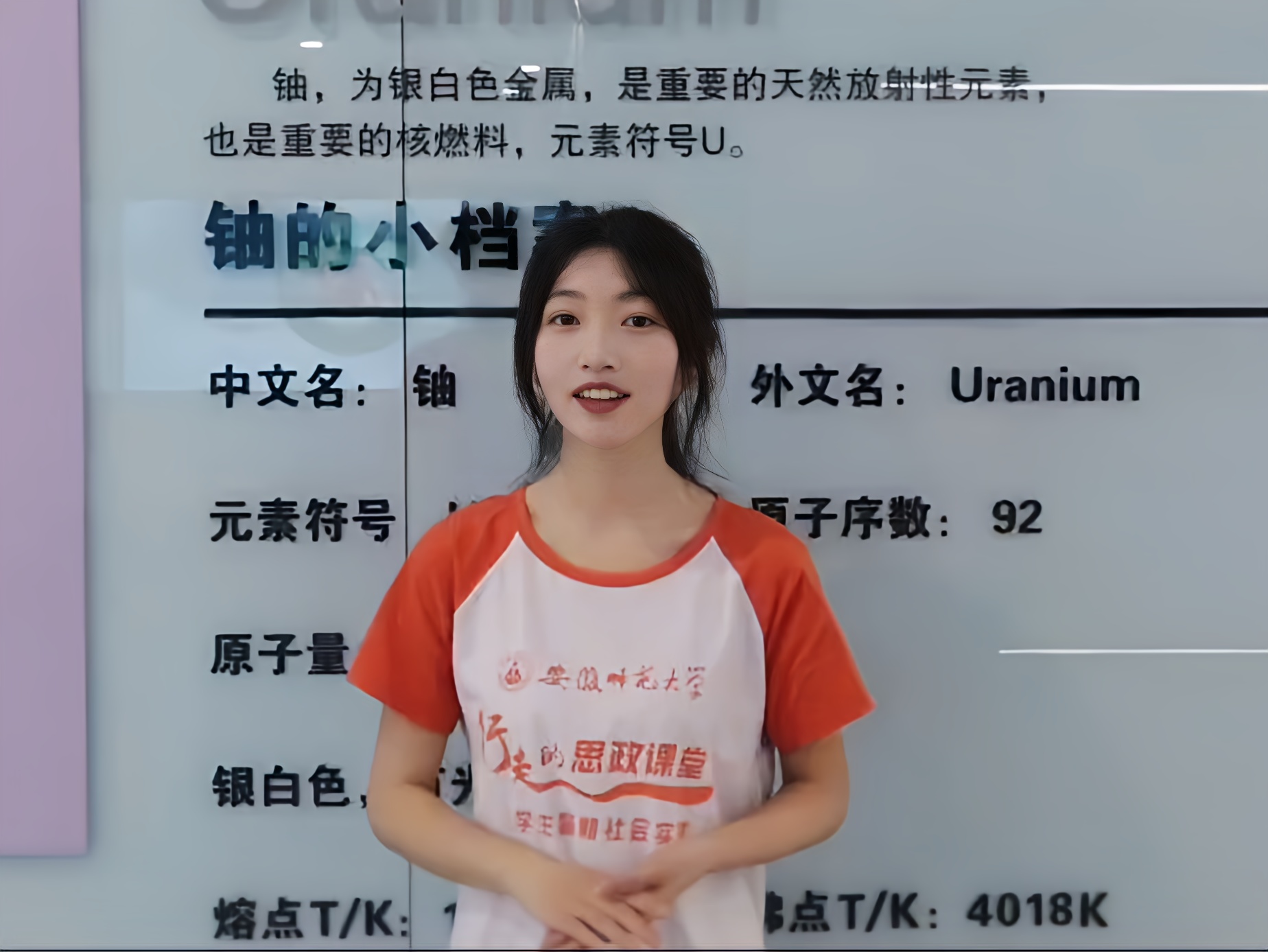7月5日下午2点30分,实践队再次抵达核科技馆,开展志愿宣讲及视频录制工作。6名成员分赴指定展区:核科学奥秘展区由何玉娇、成添添以“从铀原子到核裂变”为主题,生动解析放射性元素的发现历程与核能转化机制;核技术应用展区由李依然聚焦同位素技术应用,结合辐照灭菌、医疗CT等生活实例,展现核科技的民生价值;核安全与环境展区由曾艳通过对比核能与化石能源的环境影响,阐释我国核安全观与绿色发展战略;核科学前沿展区由张婉琪立足“人造太阳”与可控核聚变研究,展望未来清洁能源发展前景。
