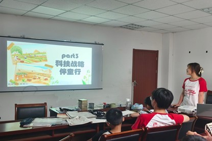 地理与旅游学院赴芜湖弋江区马塘新镇“童心圆”支教宣讲团队于2025年7月6日深入芜湖弋江区马塘新镇元山社区,开展以“古今‘粮’缘”为主题的特色支教活动。团队以粮食文化为脉络,设计农耕知识讲解、作物盆栽实践、菜系地理解析等多维度课程,通过 PPT 演示、手工创作、音乐互动等形式,带学生们在识粮、惜粮、赞粮的沉浸式体验中,感受粮食文明的千年传承,让家国情怀在趣味课堂中自然生长。