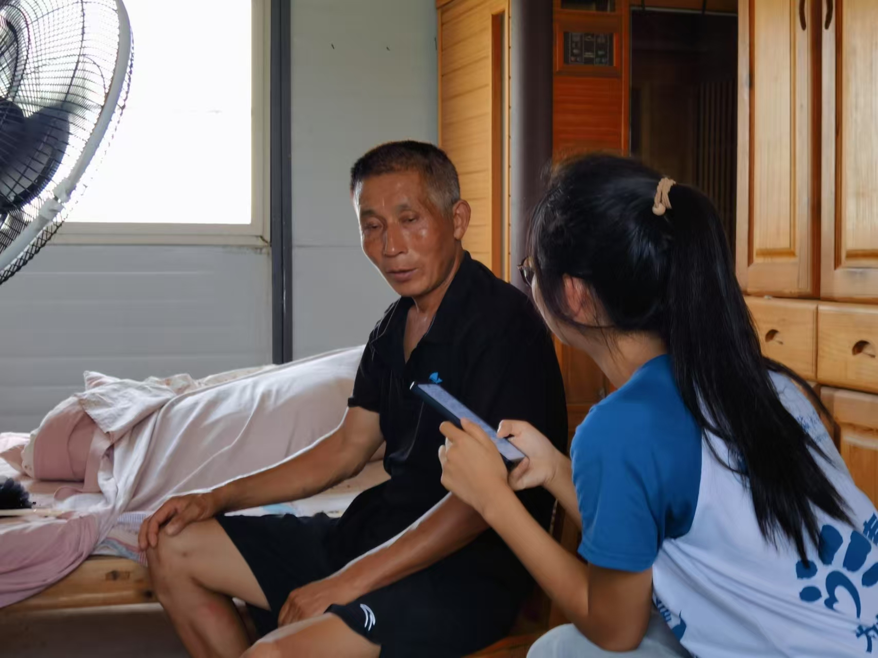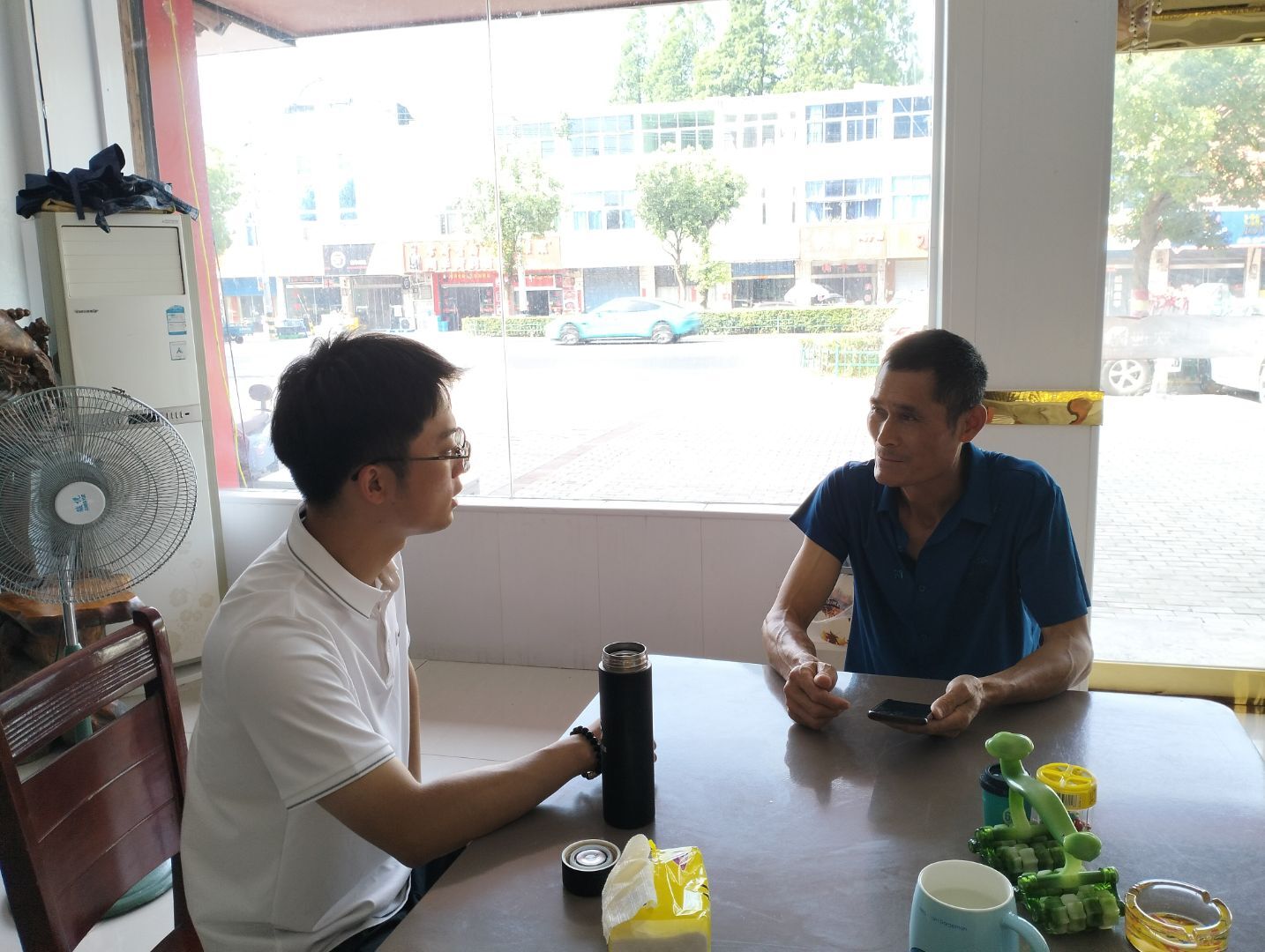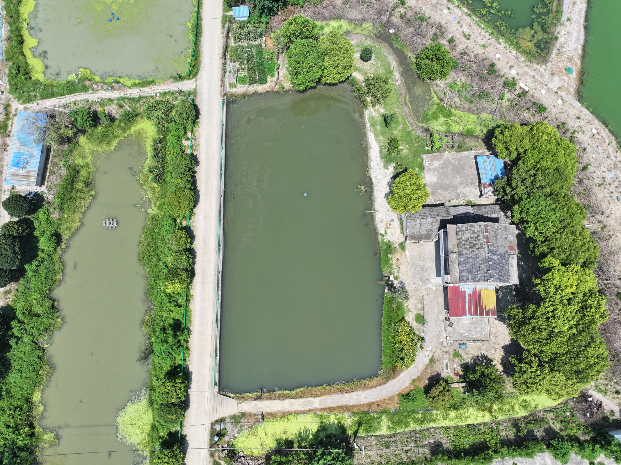 7月6日,团队前往芜湖市湾沚区六郎镇,继续使用无人机观测池塘并记录特征信息。此次调研聚焦强桥村粤海村养殖示范基地,对长期从事加州鲈鱼养殖的李敏贵进行了标准化问卷调研与深度访谈。