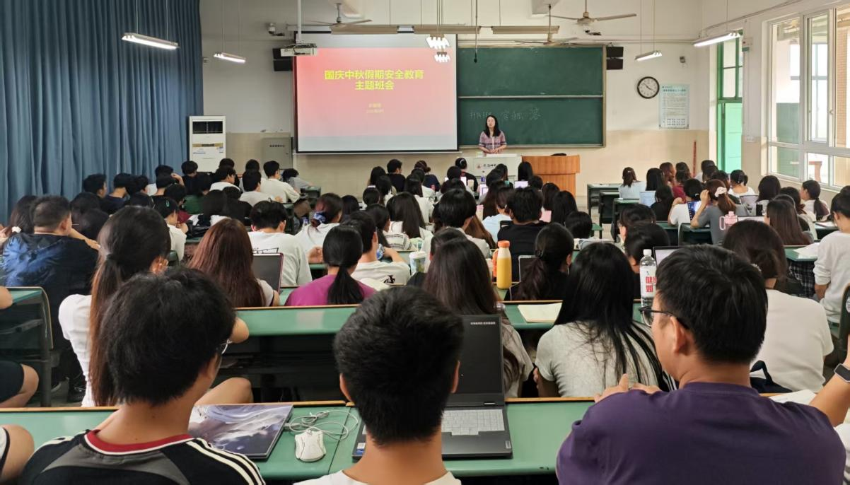 临近国庆中秋假期,彭媛媛强调了放假安排与假期安全注意事项。她指出,全体同学须严格遵循既定规范与操作要求办理请假手续。并且她提醒同学们离校要整理好宿舍卫生,切断电源,消除安全隐患。