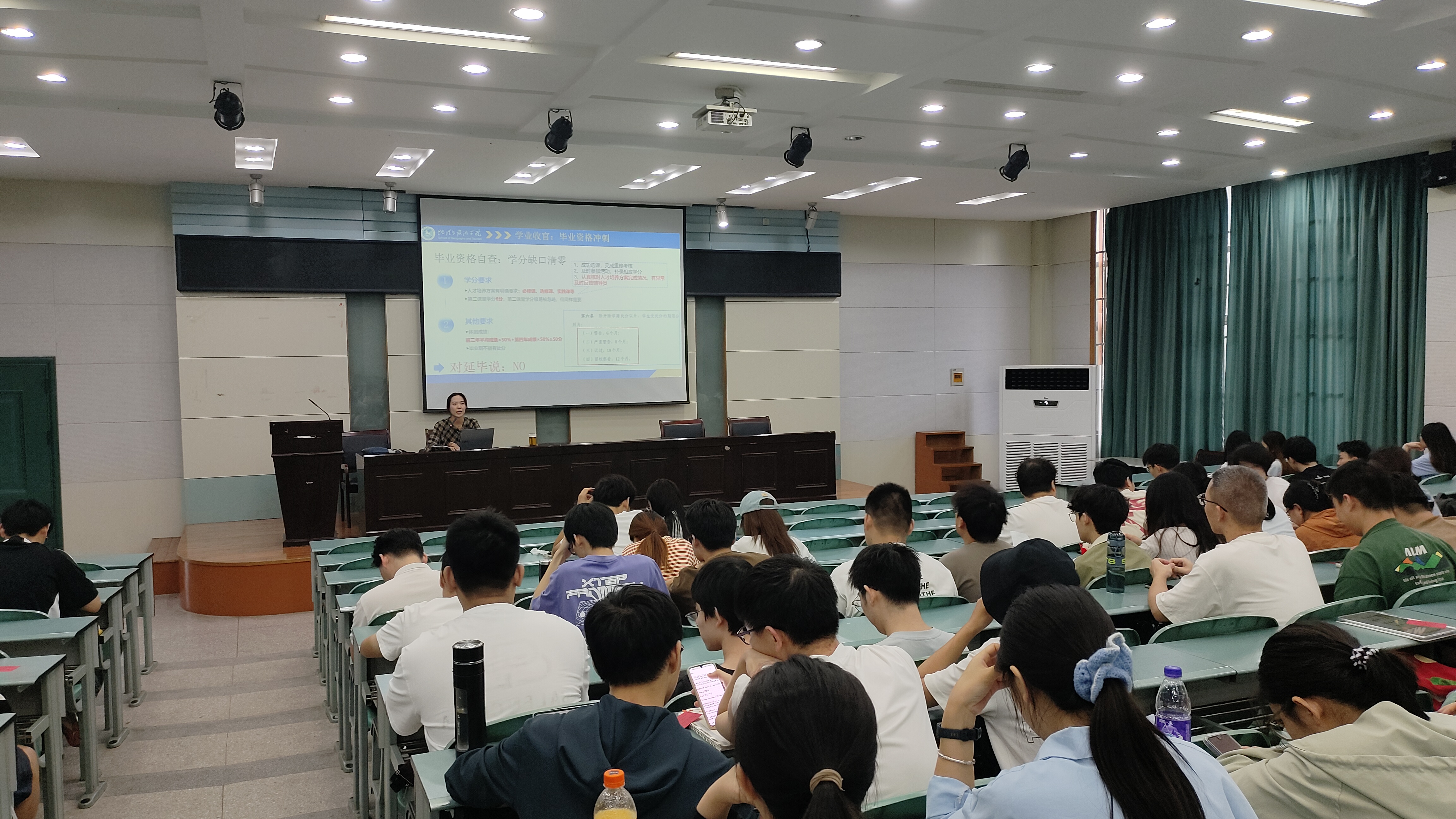 实验楼101报告厅召开主题班会“大四,毕业启航进行时”。2022级地理科学(拔尖班)、地理信息科学、土地资源管理三个专业全体同学参与,班会由辅导员陈祥云主持。