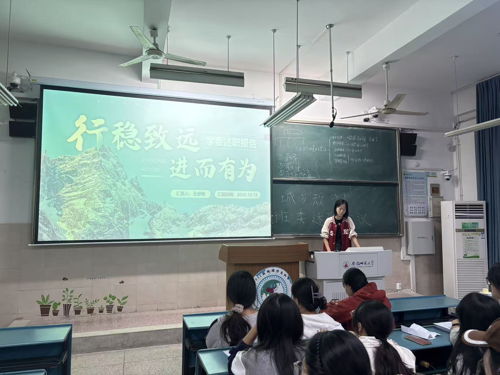 2024级城乡规划、土地资源管理专业于10月16日晚在行知楼四号楼召开班委述职暨换届选举大会。全体同学参加会议,班助章怡晨主持会议。