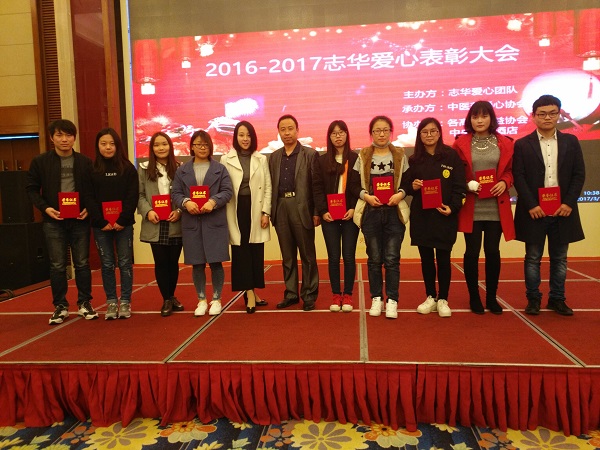 本网讯(国旅学院 刘冠琪、郑香华)3月18日上午,由志华爱心团队主办的2016-2017志华爱心表彰大会在中央城大酒店隆重举行,与会嘉宾有市文委、市民政局、市政法委及相关企业、高校领导,我校爱心者协会指导老师刘冠琪、协会志愿者应邀参加表彰大会,并接受表彰。