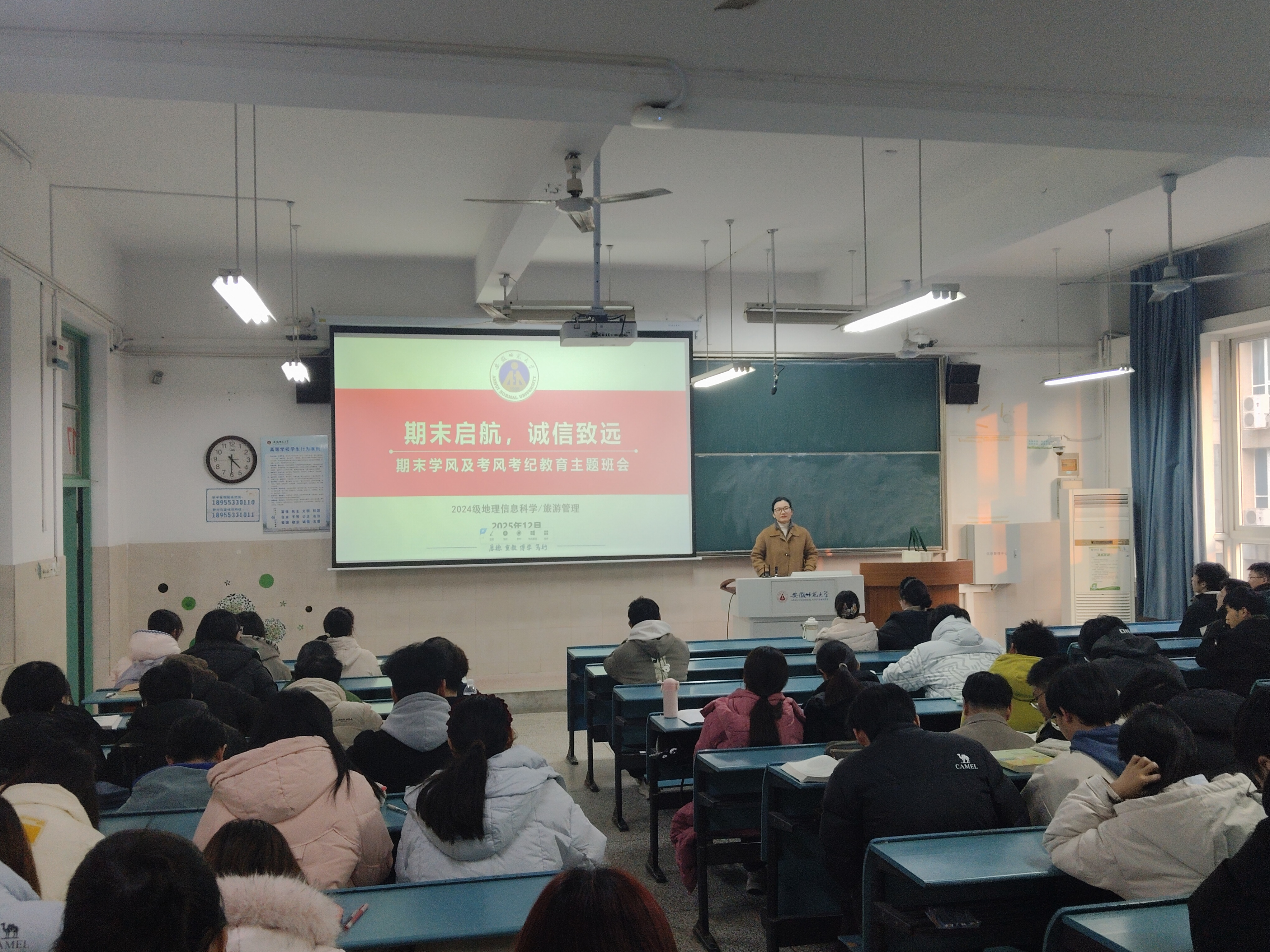 2024级地理信息科学、旅游管理专业召开了期末学风建设与诚信考试主题班会。班会由辅导员韦银艳主持。