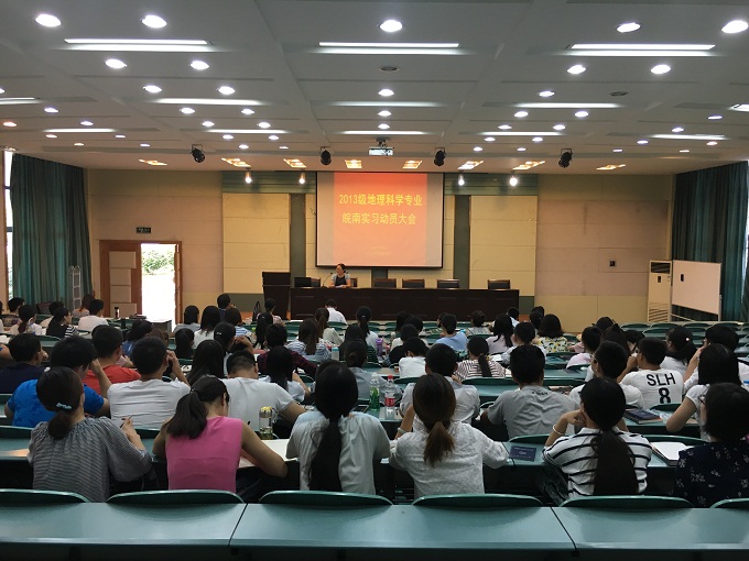 本网讯(国旅学院 陈健)9月4日下午,国旅学院2013级地理科学专业皖南区域地理野外实习动员大会在院实验楼101报告厅举行。学院教学副院长方凤满,地理系主任高超,全体实习指导教师及2013级地理科学专业学生参加了本次大会。