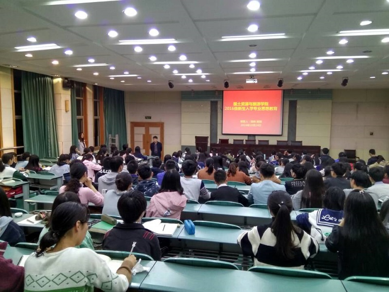 本网讯(国旅学院 孟兰英、刘冠琪)为加强2016级新生专业思想教育,激发学生对专业的归属感与认同感,10月24日晚七点,我校科研处处长、学院博士生导师陆林教授应邀为2016级旅游管理、酒店管理新生开展专业思想教育,讲座在院实验楼101教室举行。