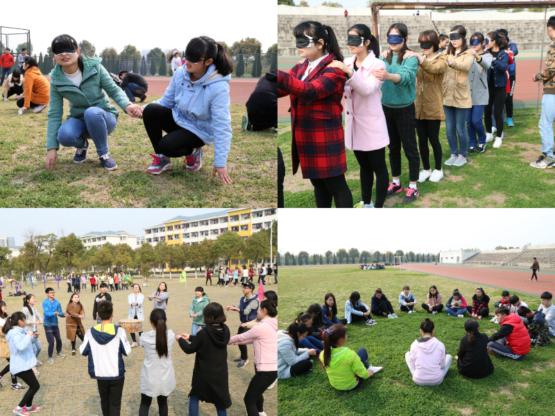 本次活动主要分破冰、盲人方阵、击鼓飞扬等三个版块。首先在破冰环节将120余名同学随机分为8个小组,进行小组风采展示,一个个诙谐有趣的队名口号引发场下阵阵的欢笑和掌声,此环节不仅迅速拉近同学距离,还激发了同学们的创新思维;接着,是盲人方阵和击鼓飞扬两个版块交替进行,盲人方阵让同学们在没有视觉帮助的情况下,仅凭语言和肢体交流,共同完成目标,击鼓飞扬则是通过全队同学的配合,拉起圆鼓周围数十根绳子,来控制圆鼓击打皮球,这两项活动都是需要同学们分工合作、产生领导者和执行者。活动结束后,同学们纷纷分享自己在活动中的感受和领悟,有参与体验的同学在微信中写道:“作为一名旅管专业学生,团结协作是必备的基本要求,这次活动让我们在分享快乐中共同收获。”
