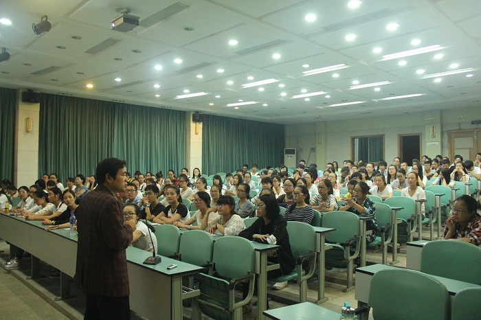 旅游管理专业的发展史,解答了旅管学子们的困惑;最后,王朝辉又结合新生即将迎来的四年学习生涯,从“学业”角度,交代了身为安师大学子,更身为旅管人所应具有的能力,包括实践能力、科学素养和企业精神等等,对大一新生的大学生涯规划进行了指导。