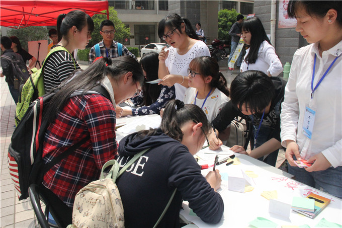 开办母爱邮局,照片传递温暖。5月7日中午,“母爱邮局”活动在花津校区二食堂广场举行。同学们纷纷驻足,在免费发放的明信片上为母亲写下拳拳祝福,为母亲送去惊喜。同时进行的“时光照片墙”活动展示了感恩母亲节微博互动活动征集的精彩照片和微家书。一张张母亲的老照片,一封封对母亲的真情告白,让时光的印迹和字里行间的温情彻底交融。