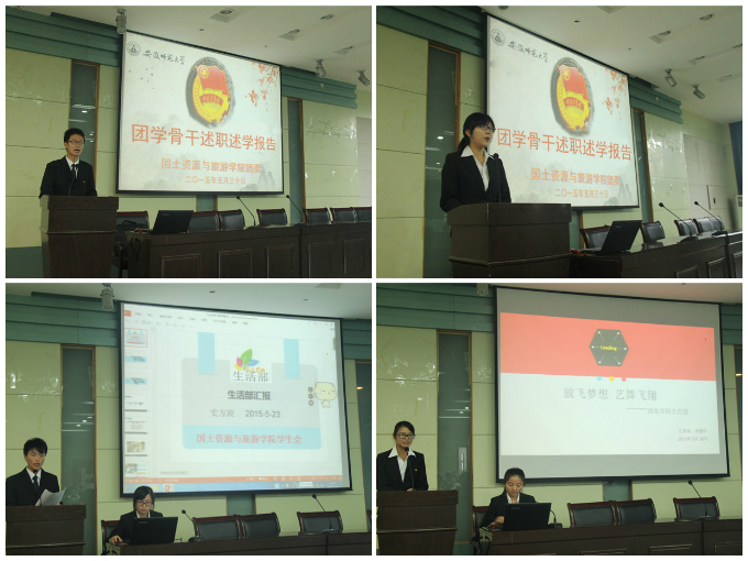 本网讯(国旅学院 新闻部)5月30日上午8时,国旅学院2014-2015学年团学骨干述职述学报告会在院实验楼101如期举行。院党委副书记乔静,院团委副书记陈健,全体专兼职辅导员和团学骨干近200余人参加了报告会。