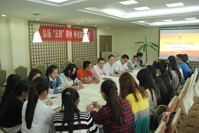 时至第96个五四青年节,校团委副书记汪凯与院党委副书记乔静共同领学了习近平总书记在与北京大学师生座谈时的重要讲话精神,以“如何练好习近平总书记传授的‘八字真经’”为主题,引发热烈讨论和广泛共鸣。