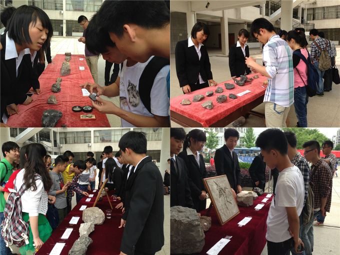 本网讯(13地科 周男)为了在师大校园里普及地质知识,提高师大学子了解学习地理的兴趣,同时展示国旅学院13级地理科学专业巢湖实习的丰硕成果,充分展示其独具特色的专业风姿,2014年5月21日中午,由13级地理科学专业主办的主题为“石意,石忆”的化石展在师大花津校区大学生活动中心成功举行。