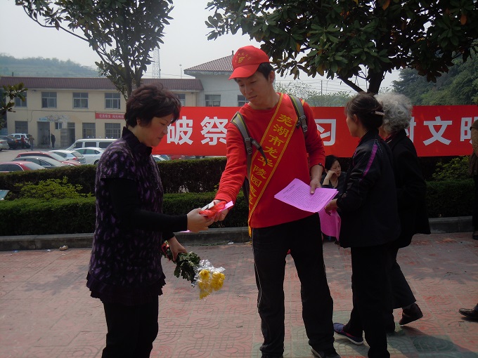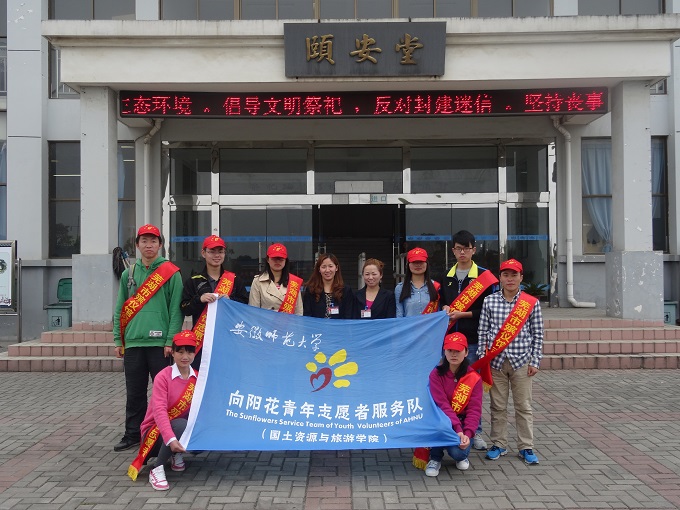 本网讯(院记者团 赵影)为响应国家文明理性祭扫的倡议,践行青年志愿者无私奉献的精神,来自国旅学院2013级20余名大学生志愿者放弃清明节假期,前往芜湖市最大的陵园祭扫场所——“回然园”开展志愿服务活动。