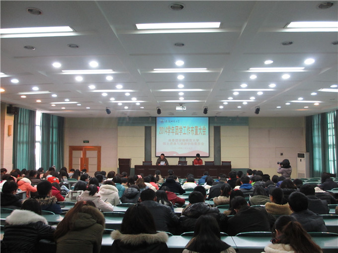2013学年团学工作的突出业绩,进一步做好2014学年团学活动的安排,院团委于2月19日下午在院实验楼101会议室召开了2014学年团学工作布置大会。会议由院团委书记张鑫主持,学生会工作指导教师、13级辅导员陈健、吴辉及全体12、13级团学骨干200余人参加了此次会议。