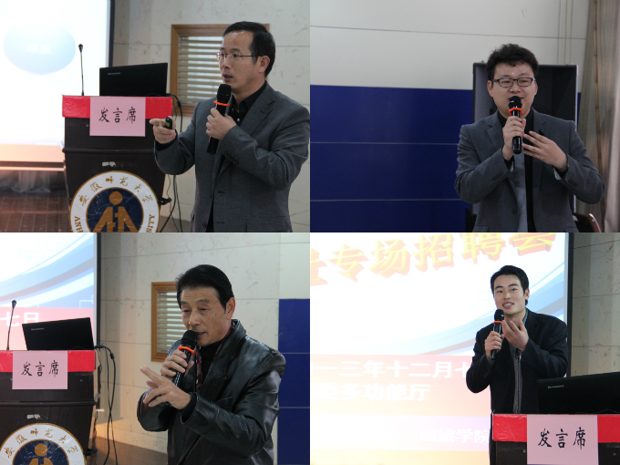 此次宣讲招聘会分为企业宣讲和招聘两个环节。会议开始,各著名旅游企业单位代表通过播放宣传片,PPT等方式生动全面地展示了各公司情况。其中安徽环球国旅的徐华玉总经理以“带着理想做旅游”为主题给在场大学生带去了精彩的演讲,分别从我国旅游业的现状、环球国旅企业的发展以及就如何成为旅游人才等方面为大家勾勒了美好的职业蓝图。随后携程旅行网、芜湖国游旅行社、芜湖商会旅行社有限公司等企业代表也纷纷上台进行宣讲,激扬的话语点燃了在场每一位毕业生的希望与热情。在随后的互动提问环节中,毕业生就岗位选择选择、就业心态、职业发展等问题进行咨询,各企业代表认真作答,并鼓励大家要审视行业、脚踏实地、积累资本。