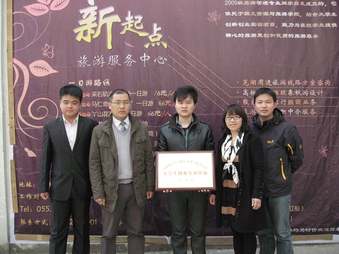 据悉,自开学伊始,学院团委即积极奔走,协调各方,拟为学院现有五大专业全力搭建创业实训孵化基地。“新起点”旅游服务中心的成功创立,标志着学院打响了全面推进毕业生就业工作的“发令抢”。该中心完全由我校旅游管理专业09级倪斌斌、11级谢京、12级赵凤涛等同学发起创立,为我市首家面向高校师生群体的旅行服务机构。