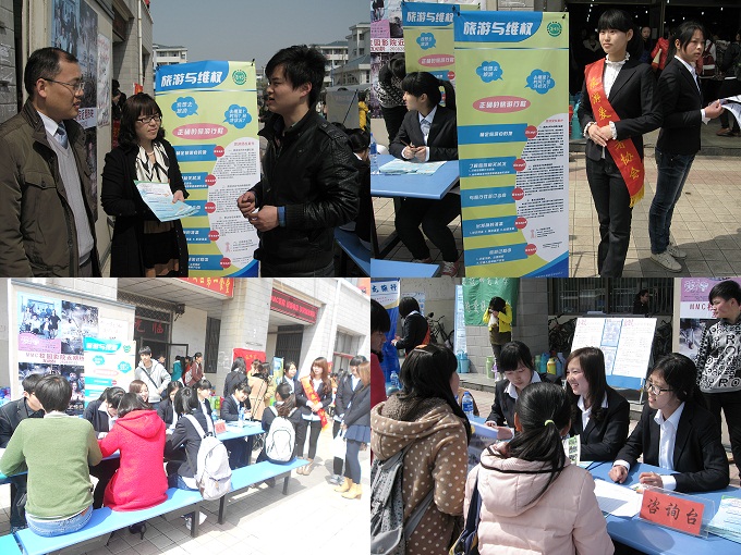 3月15日,院团委以“3·15”消费者权益保护日为契机,以旅游爱好者协会为平台,联合我市首家大学生校园旅行机构——“新起点”旅游服务中心,在校园内外广泛宣传旅游者的合法权益及低碳旅游新概念,引起了广大师生的一致好评和积极响应。