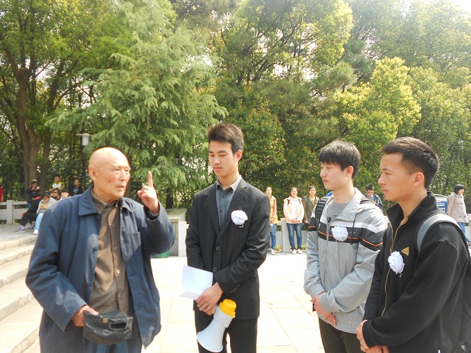 在志愿服务中,一位前来悼念战友的87岁高龄的抗战老兵也加入了活动中来。这位老兵以自身的经历谆谆教诲团员青年们,一定要肩负起振兴中华的重任,发扬革命先烈的精神,为伟大的中国梦而奋斗。