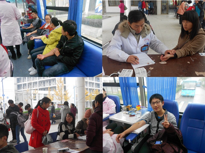在团委老师辅导员及团学骨干的组织引导下,同学们依次填表、登记、进行心跳检测、血型检测、进献血车献血、领取献血证,一切井井有条。体检合格的同学兴高采烈地走进献血车,体检不合格的同学则颇有遗憾,表示今后要加强营养与锻炼,争取下次献血体检成功。老师、同学们无私奉献的精神让人感动,尤其在1117日中午,天空飘着濛濛的寒雨,辅导员张老师亦冒雨来到活动现场,亲切慰问献血的同学,场面亲切感人。在辅导员老师的关怀下,同学们更是拿出了“新雷锋”的风采:正在抽血的同学居然笑着摆出“V”字形手势。当被问及献血时的感受时,12级地理科学专业的卢宇笑着说:“献血有益于健康,还能挽救他人的生命,为社会做贡献,感觉真像做了回雷锋呢!”