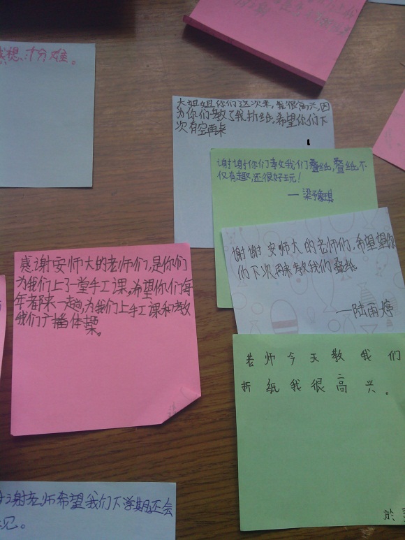 本次义务支教活动得到了当地村委会及校方领导的大力支持,进行了充分的宣传工作,各学生家长对活动也给予了极大地肯定和关注。活动伊始,队员们在校方领导老师的带领下,简单的参观了校园,并与学生进行了简单的交流,与学生们互相认识。下午主要是安排课堂教学与课业温习,一共涉及到15年级70多名小学生,课程内容包括语文、英语、数学等。教学过程中,小朋友们无不认真听讲,积极发言。除了对书本知识的辅导,队友们还为小学生们设计了手工课,并教授他们最新的广播体操,希望孩子们在学习的同时能注意体质的锻炼。最新的广播体操虽然很难,但孩子们学得都极为认真,也从中找到了极大地乐趣。孩子们纷纷写下了动情的“寄语小卡片”。