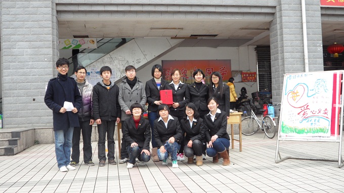 心系孤儿,传递爱心。为响应校院两级领导的精神指示,弘扬雷锋精神, 2011级旅游管理2班团支部组织全班同学进行“心系孤儿,爱心义卖”活动,班里的每位同学自愿捐献出一些小物品,为孤儿院的孩子进行筹集善款活动,以此来传递一份爱心。