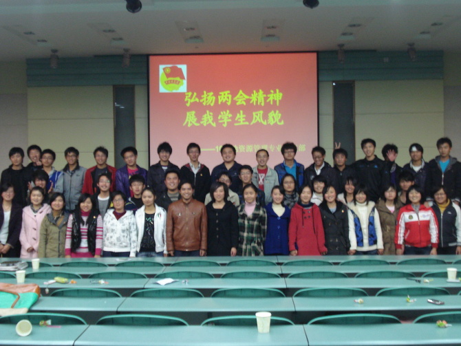 在校两代会顺利召开之际,为让学生对两代会有更深刻的了解,进一步促进班风学风建设的深入进行,11月29日下午,2010级土地资源管理专业在实验楼101教室举办了“弘扬两会精神,展我学生风貌”主题团日活动。