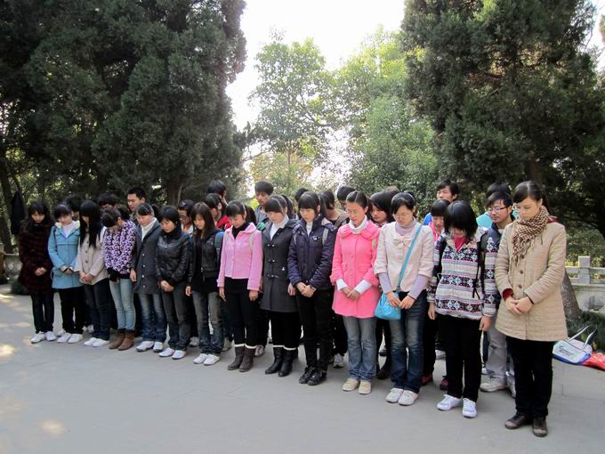 当天上午,党课学员们们排着整齐的队伍,举着党旗,来到戴安澜烈士墓。在烈士墓下,同学们静心倾听先辈的革命故事,感受他们的革命精神,向革命烈士们献上了一束束鲜花,以示缅怀之情。面对烈士墓,同学们集体默哀,寄托着对烈士的崇敬和哀思。之后,同学们进行了集体宣誓:发奋读书,努力成才,为祖国的繁荣富强时刻奋斗!誓词在纪念碑前久久的回荡……