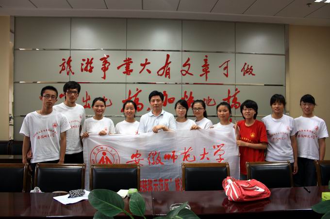 在启动仪式上,首先由队员代表发言,介绍了此次暑期社会实践活动的基本概况以及实践方案。随后,左局长发表讲话,他用“123445”模式精炼的概括了芜湖旅游交通现状并阐述了芜湖旅游发展战略及方向。左局长认为,宁宜城际铁路建设机遇和挑战并存,芜湖旅游业应从四个方面做足工作:一要提高旅游服务质量,二要丰富旅游产品,三要提高接待能力,四要扩大市场营销。期间,左局长与本小组成员进行了良好的互动,左局长热情、耐心的解释了本小组成员的种种疑问,并为小组暑期社会实践活动指明了方向,明确了目标。