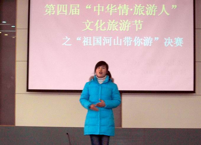 由院团委主办、2008级旅游管理专业承办的第四届“中华情、旅游人”文化旅游节之“祖国河山带你游”总决赛于12月26日在院实验楼101教室隆重举行。多年从事国家导游资格面试工作经验的吴悦、余伶莲、张伟等老师担任评委,国旅学院、外国语学院和校旅游爱好者协会的230多名同学来到了决赛现场。