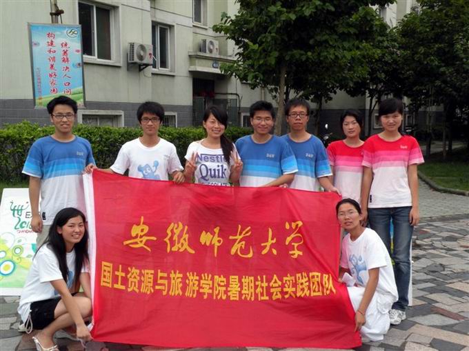 2008旅游管理专业12名同学走进芜湖南瑞社区,开展了以“走近精彩世博盛会,共建城市美好生活”为主题的暑期社会实践活动。