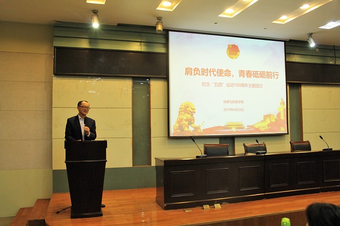 团委于院实验楼101报告厅举办纪念五四运动100周年主题团日活动。院团委书记吴辉携2018级地理学、城乡规划专业全体学子,共赏影片《我的1919》,以实际行动纪念五四运动。历社学院团委书记宫超受邀参加活动。