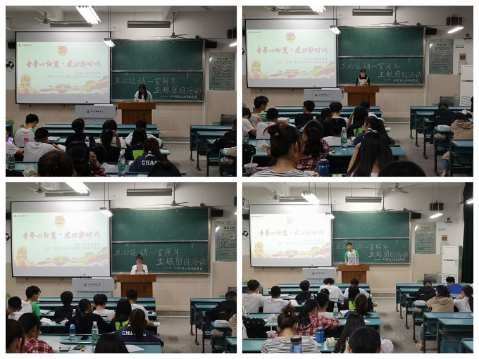 首先,同学们观看了关于五四运动的微电影《青春与祖国同在》,了解有关五四运动的历史背景与深远意义,影片向同学们抛出一个问题“如果用一百年的青春画一幅肖像,会是什么模样?”;紧接着,各团小组代表上台发表自己的观点,谈论自己的感受。之后,在团支书王睿涵的带领下,同学们一同观看了习近平总书记在纪念五四运动一百周年大会上的讲话视频,学习习近平总书记对新时代中国青年提出的六点要求,并纷纷上台交流自己的学习心得和感悟。活动最后,陈祥云作总结寄语,她强调,五四精神的核心是爱国主义,习近平总书记也提出新时代中国青年要热爱伟大祖国,同学们应怀着爱国情怀读好书、做好人,既要俯下身子潜心学业,又要放开视野关心国家大事,将自身价值的实现同祖国的发展、民族的振兴相统一。