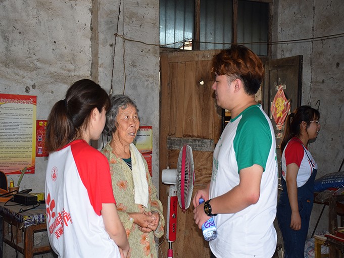 2018年7月,团队成员第一次来到臧立成老人家。重病瘫痪的儿子、斑驳不堪的墙壁、摇摇欲坠的电风扇、两位老人辛酸的泪水......给团队成员留下深刻的印象,团队立即将臧奶奶一家确立为项目重点帮扶对象。2019年团队在项目实践过程设立了“田园基金”公益板块,专门用于乡村特困户帮扶。6月1日团队为其提供2000元田园基金援助,约定未来帮扶方式。