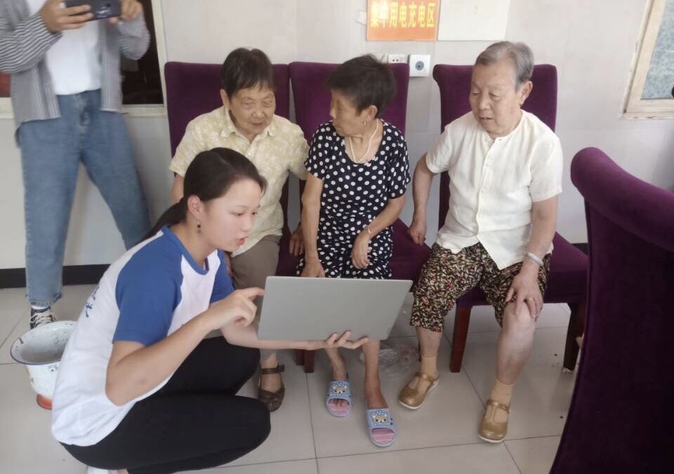 )近日,团队分别奔赴香苑老年公寓和瑞星老年公寓,为老人们科普以地震为主的防灾减灾知识。由于敬老院的场地及设备有所限制,队员们采用了半脱稿的方式向老人们介绍了地震等不同自然灾害的种类、成因,并讲解了灾害发生前的前兆以及遇到灾害时的逃生自救方法。宣讲之后,队员们利用电脑等设备为老人们播放了防灾减灾知识的视频,并以“一对一”的方式,辅以生动详细的动作示范,分别为每个老人具体讲解了遇到灾害时的自救方法。