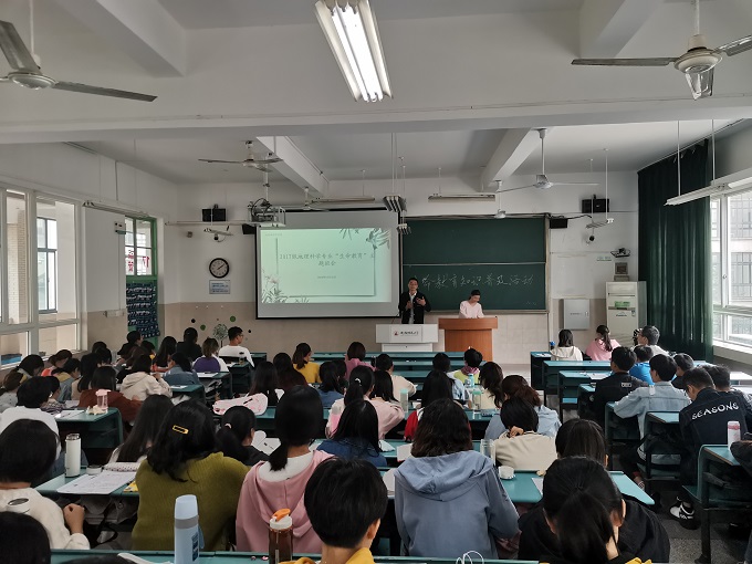 孙夏路遥)10月22日上午, 2017级地科、地信专业生命教育主题班会在行知楼2040303教室召开,2017级地科、地信专业全体同学参加,会议由辅导员韩红豆主持。