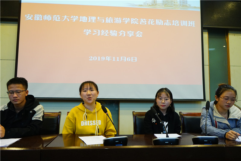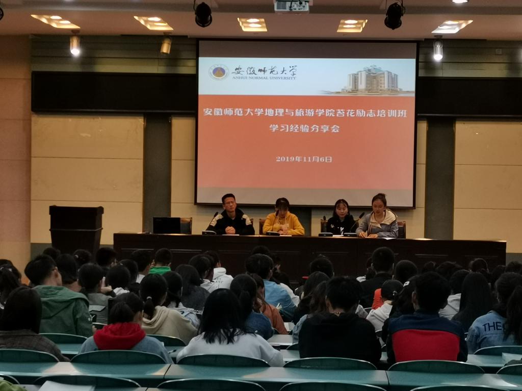 在学院实验楼101报告厅举办苔花励志培训班学习经验分享会。本次交流会邀请四位优秀学生代表黄娜、储青青、帅林茹、王川与2019级全体家庭经济困难学生交流沟通。会议由2017级城乡规划专业、2019级地理科学(拔尖人才班)、2019级地理科学类专业辅导员齐小学主持。