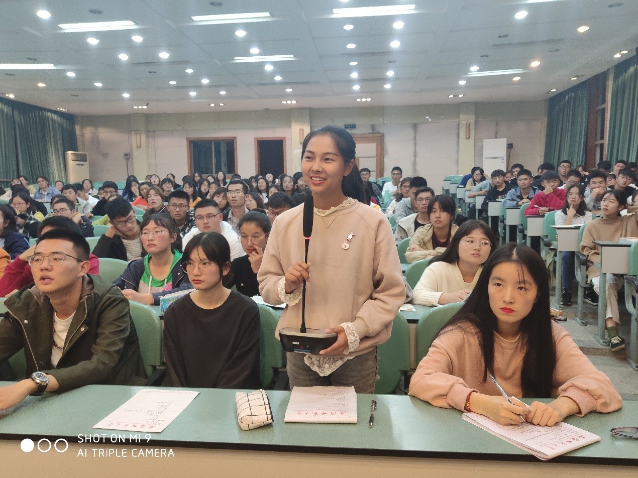 武诺 齐小学)11月3日晚,2019级地理科学大类专业在学院实验楼101报告厅召开新老生经验交流会。2018级地理科学大类专业杨帆、程茜、陈健、冯安兰、章皓宇、汪岩、张良敏等7名优秀老生代表,2019级地理科学(拔尖人才班)、2019级地理科学类1班、2019级地理科学类2班全体同学参加交流会。会议由辅导员齐小学主持。