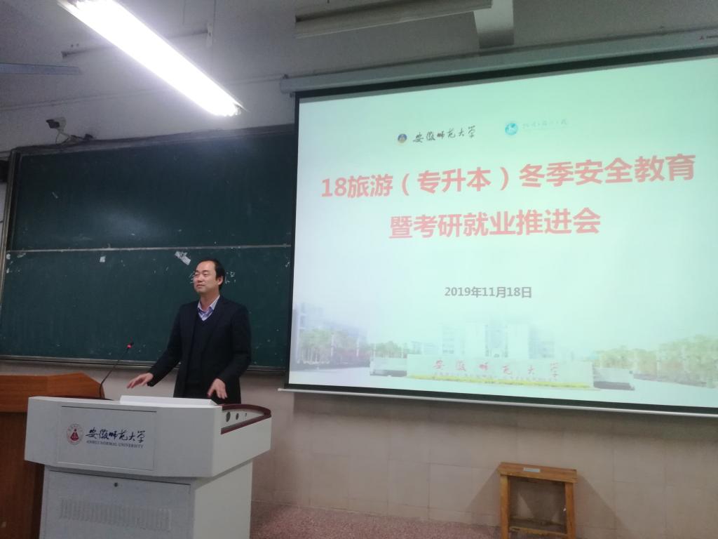韩红豆)强化学生安全意识,提高防范能力,消除安全隐患。11月18日下午,2018级旅游管理(专升本)专业在行知楼2040104教室召开主题班会,2018级旅游管理(专升本)专业全体同学参与此次会议,院党委副书记、2018级旅游管理(专升本)兼职辅导员乔静主持。