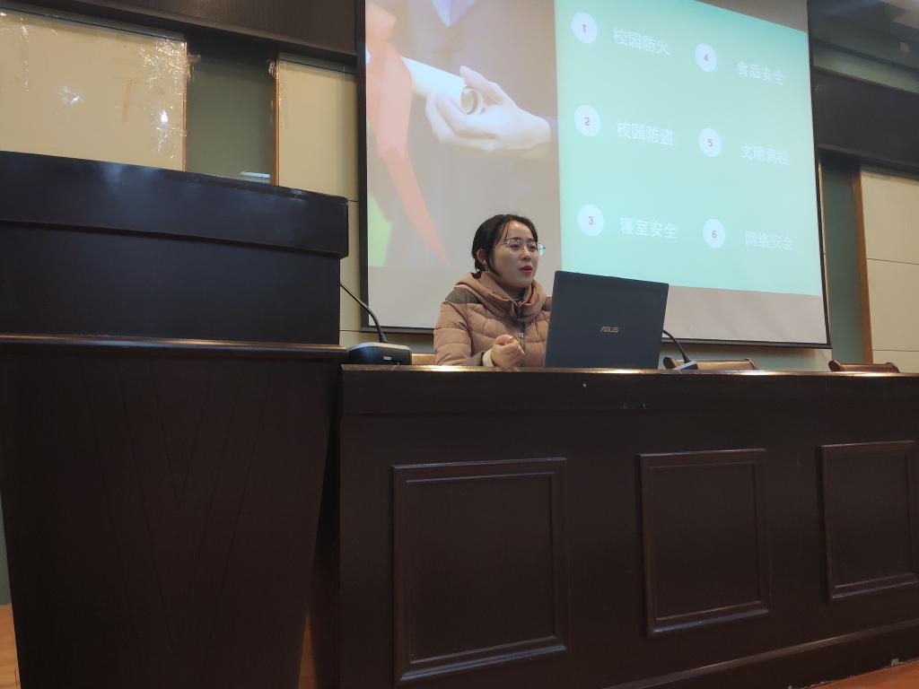李娜)2019年12月20日晚七点,2018级地理科学(非师范)专业冬季安全教育暨学生选课主题班会在地旅院楼101报告厅顺利举行,班会由辅导员王阳主持,2018级地理科学(非师范)专业全体同学参加。