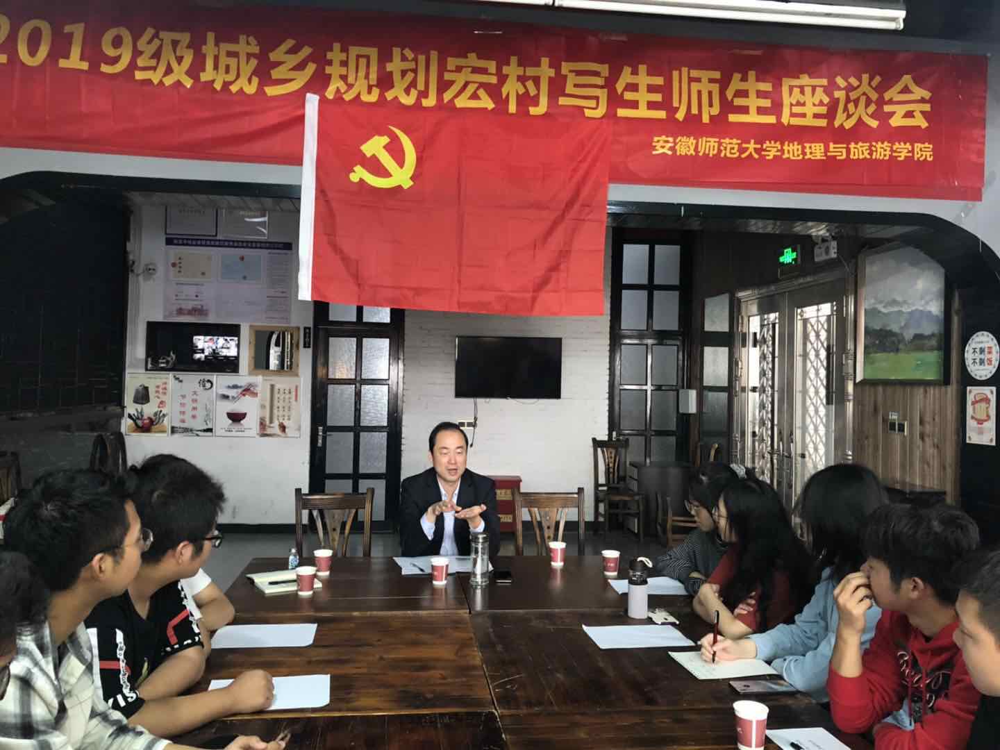 赴宏村慰问座谈会暨微党课活动,会议由黄世彤主持,会上,乔静请学生们发言,交流实习心得体会,随后,他提出“城规要有工匠精神,关心时政,学会把握国家战略”强调身为大学生要做到“五讲”:“讲政治”“讲道理”“讲奋斗”“讲规矩”“讲格局”。
