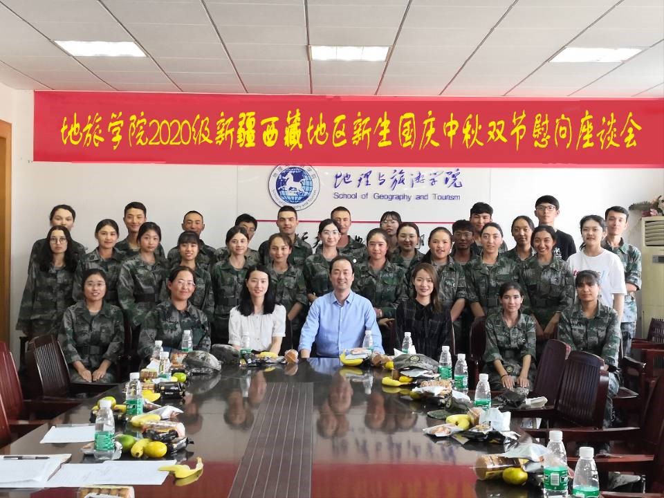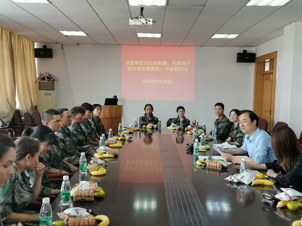行政楼三楼会议室召开了新疆西藏地区新生国庆中秋双节慰问座谈会。院党委副书记乔静、辅导员彭媛媛、赵佳慧与同学们欢聚一堂,畅谈大学生活,共度美好佳节。