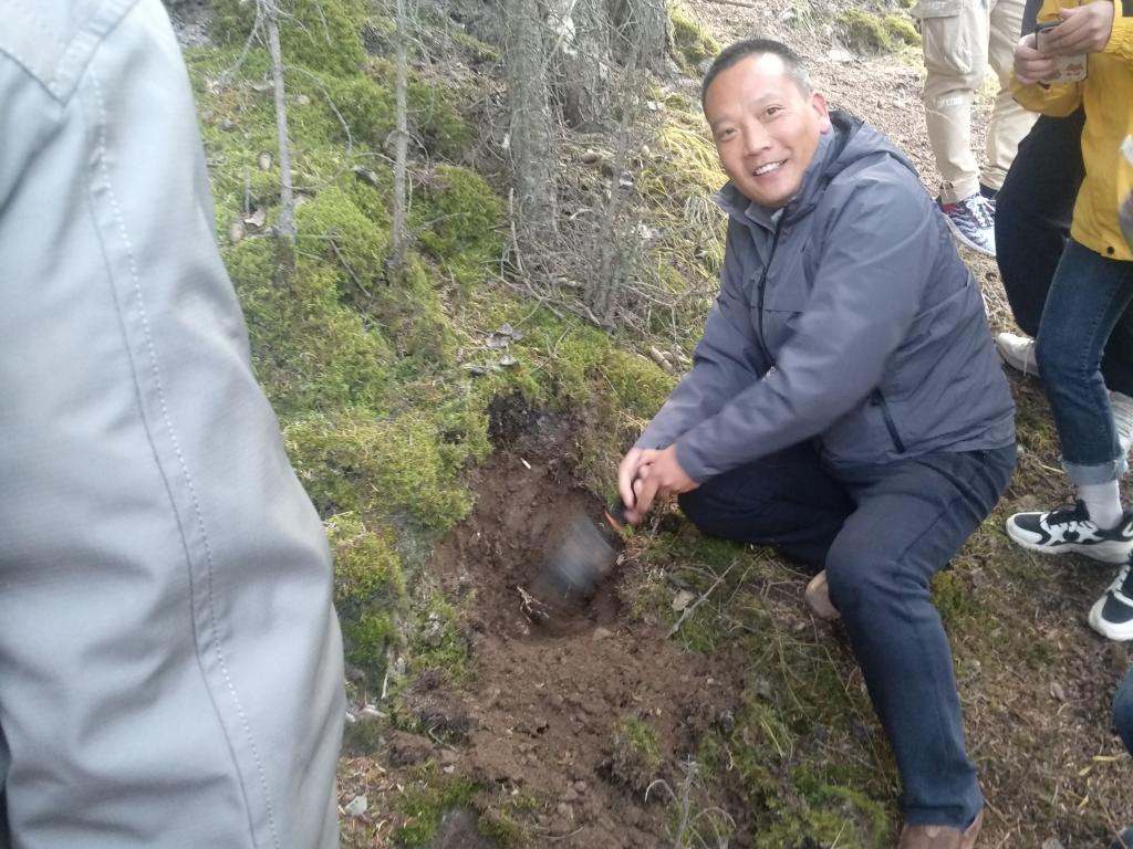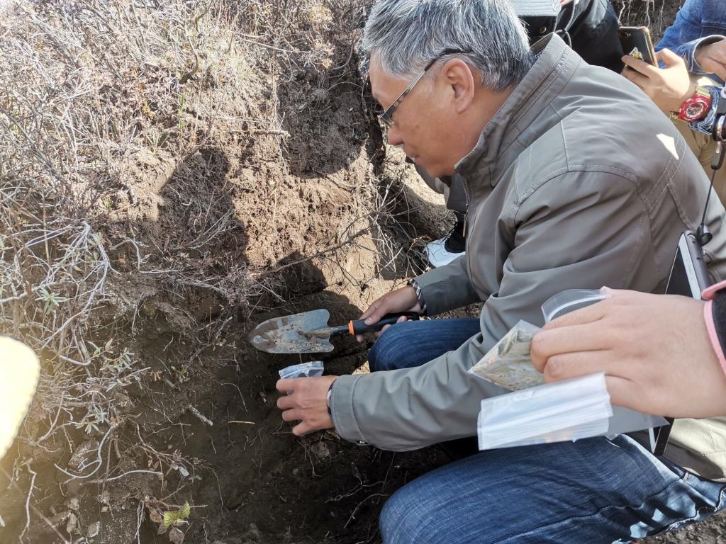 实习第一站是青海海北藏族自治州门源县的青石嘴,海拔达到了3200m,团队同学们的身体素质通过实习前的锻炼得到明显提高,无人出现高原反应。在确认好同学们的安全与健康后,程先富老师针对祁连山一带植被的山地垂直地带性分异进行了全面的介绍,并向大家解释了祁连山阴坡阳坡植被有差异的原因。同学们兴致盎然,纷纷表示在沿途坐车爬升时能非常明显感受到植被的垂直差异,也对不同植被带分布的土壤进行了积极提问,并重点对本观测点的土壤剖面展开了深入的学习和讨论。