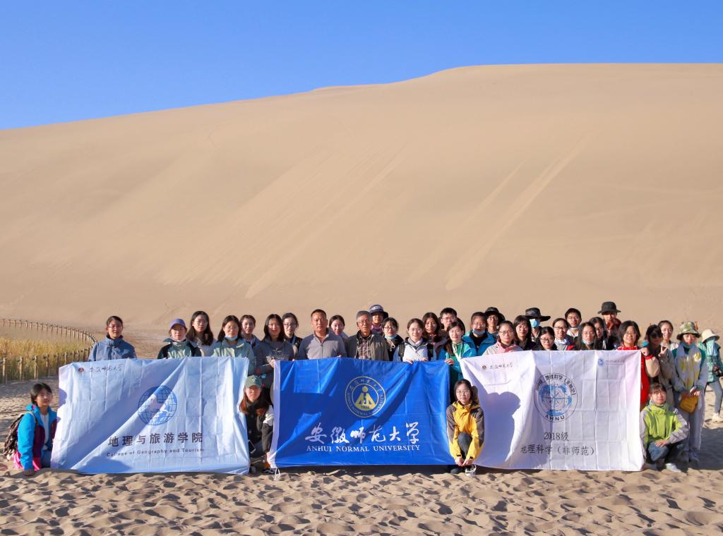 2018级地理科学(非师范)专业西北实习团队于2020年10月14日在安徽省自然地理学重点学科负责人、博士生导师、教授程先富,副教授杨立辉,辅导员王阳的带领下在甘肃敦煌继续进行西北自然地理实习,以加深同学们对西北地理环境的认识和理解。
