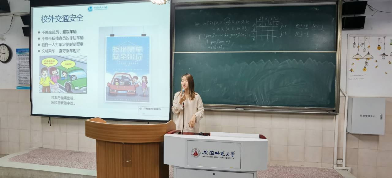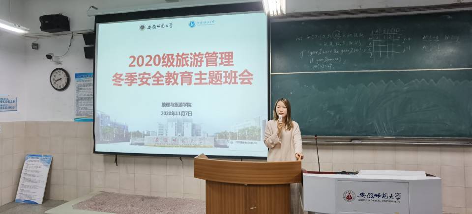 旅游管理专业的辅导员赵佳慧于10月19日晚在行知楼4号楼203教室开展了以冬季安全教育为主题的班会,全面普及校园安全常识。